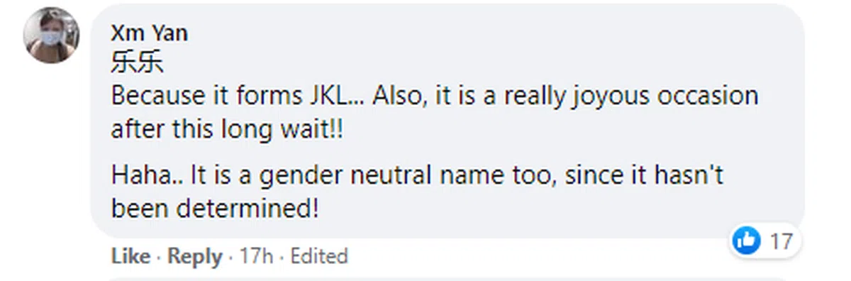 还有网民指出,大熊猫宝宝在新加坡国庆这周出世的宝宝,也可算是个“国庆宝宝”,是国庆节的惊喜礼物,也可以取名为“庆庆”。