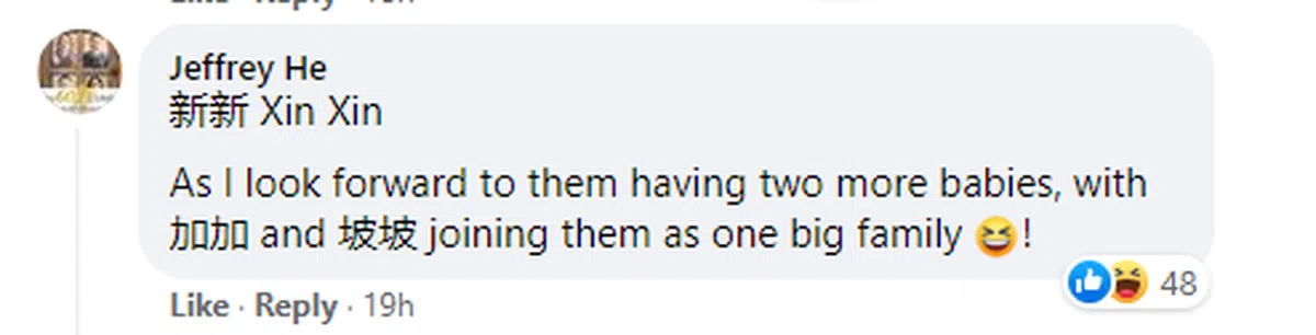 有网民与杨荣文心有灵犀,说希望嘉嘉和凯凯能再次“开花结果”,再生两个宝宝,届时就可以取名为“加加”和“坡坡”。
