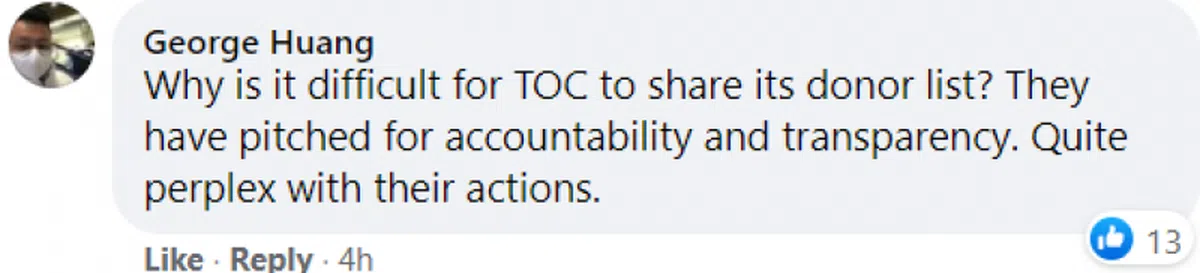 反观英文媒体,留言有数百条,很多批评道:既然没什么需要隐瞒,为何不上报?更何况,TOC平日里一再呼吁的就是问责制与透明公开的信息,为什么这次却言行不一致?