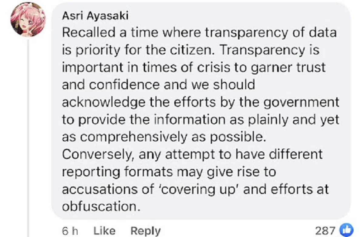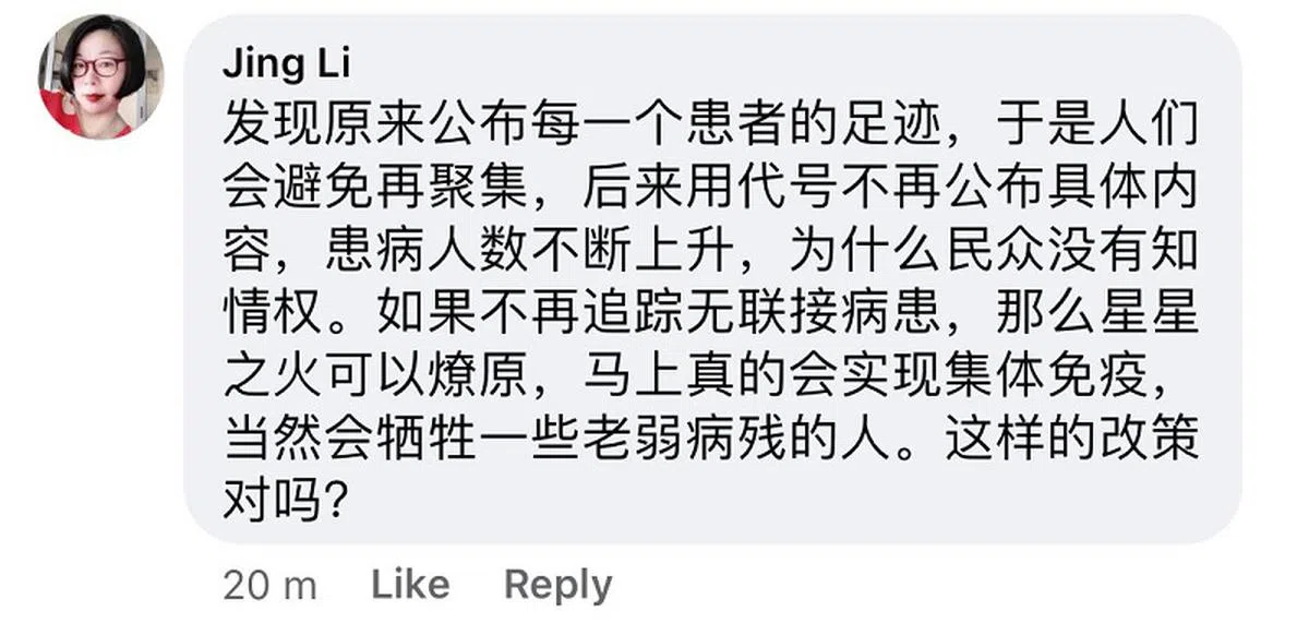也有网民指出,无论我国与病毒共存与否,当我们仍处于危机时,数据信息的透明度尤其重要,是国人对政府建立信任和信心的重要环节。