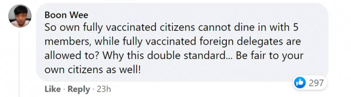 这个新闻报道犹如一石激起千层浪,即引来网民的谩骂声,也团结了键盘侠们:有高喊不公平的,有人质疑政府在抗疫措施上持双重标准,说一套做一套,也有人不满外国人似乎总是能享有新加坡人还未享受到的特殊待遇。