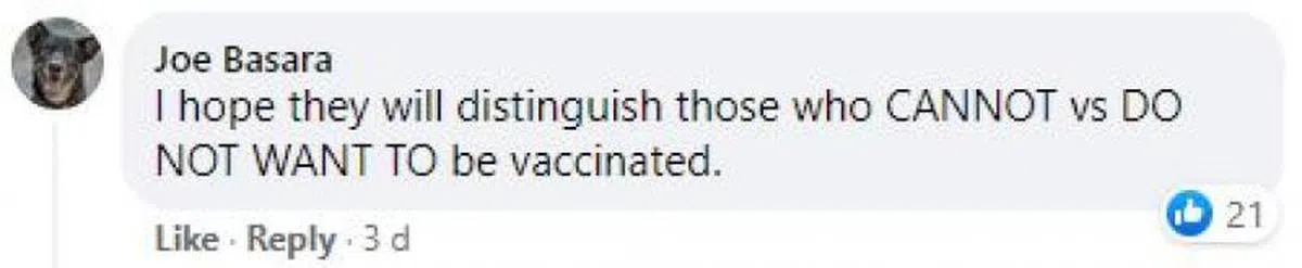 当然不少支持“选择自由”的网民也认为,政府这么做对未接种者不公平,是一种分化待遇。