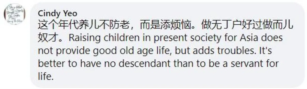 这位网民则说,如今这个年代养儿并不防老,反而是增添烦恼。他宁愿做“无丁户”也不想做“儿奴才”。