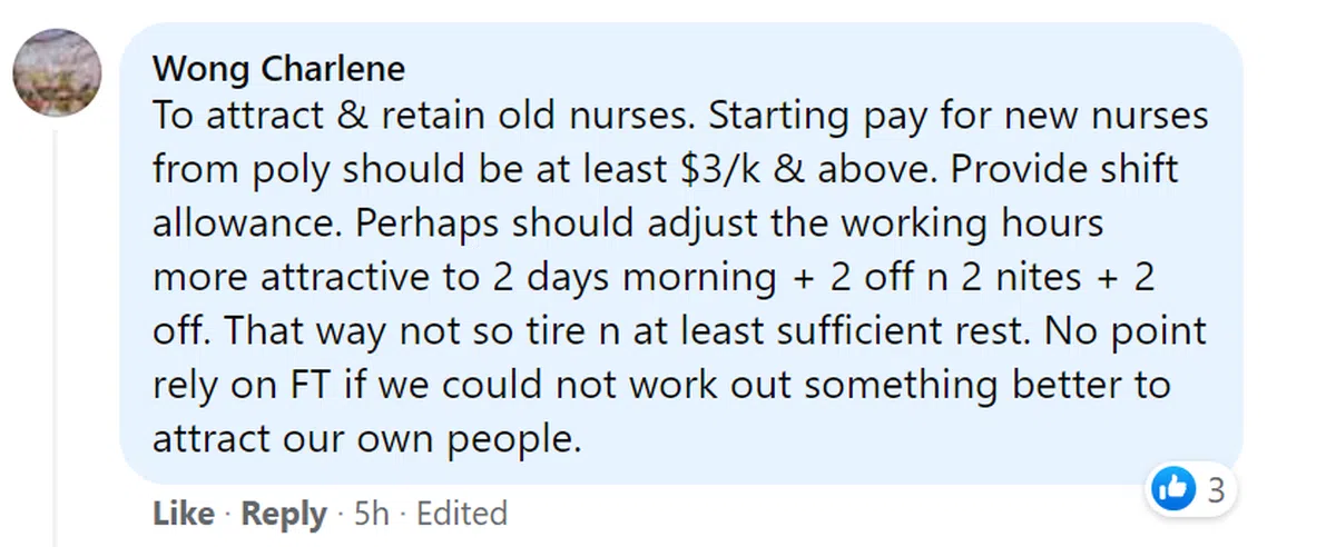 为了改善这种情况,新加坡护理局表示已与卫生部合作采取多项措施,例如为外国培训的护士提供临时注册,以增加本地的前线医护劳动力。
