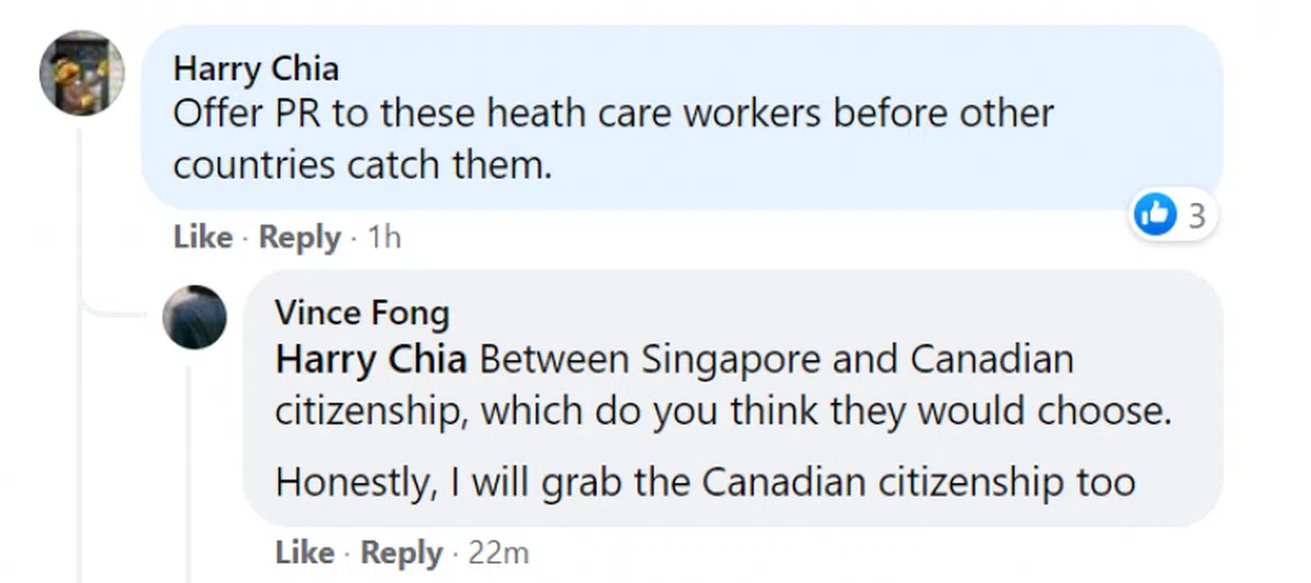 但有人就一阵见血地指出,问题是加拿大也以永久居民权作为吸引医护人员的甜头。坦白说加拿大的PR福利更好,更诱人。新加坡要给予更多,才能跟加拿大抢人。