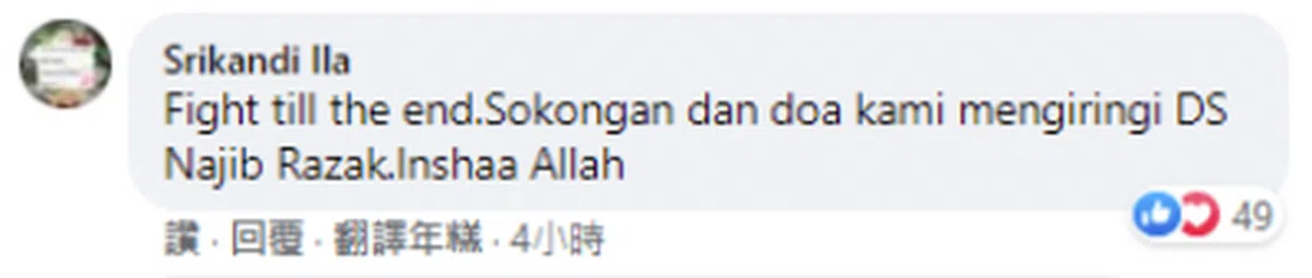 与此同时,马国民众,尤其是马来社群当中仍不乏纳吉支持者对其表达支持。