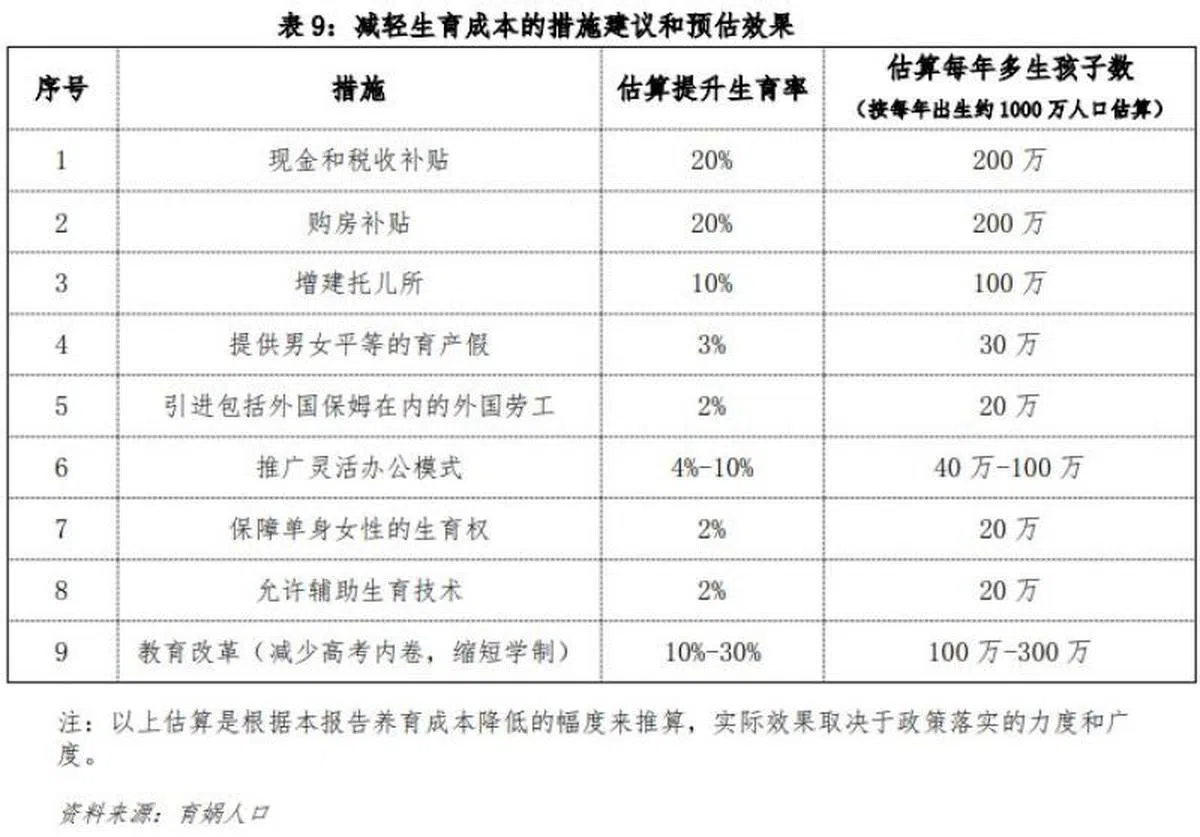 除此之外,该研究所也列出其他可帮助“催生”的妙招。有些妙招看起来“熟头熟脸”,跟我国的“催生”政策很相似。