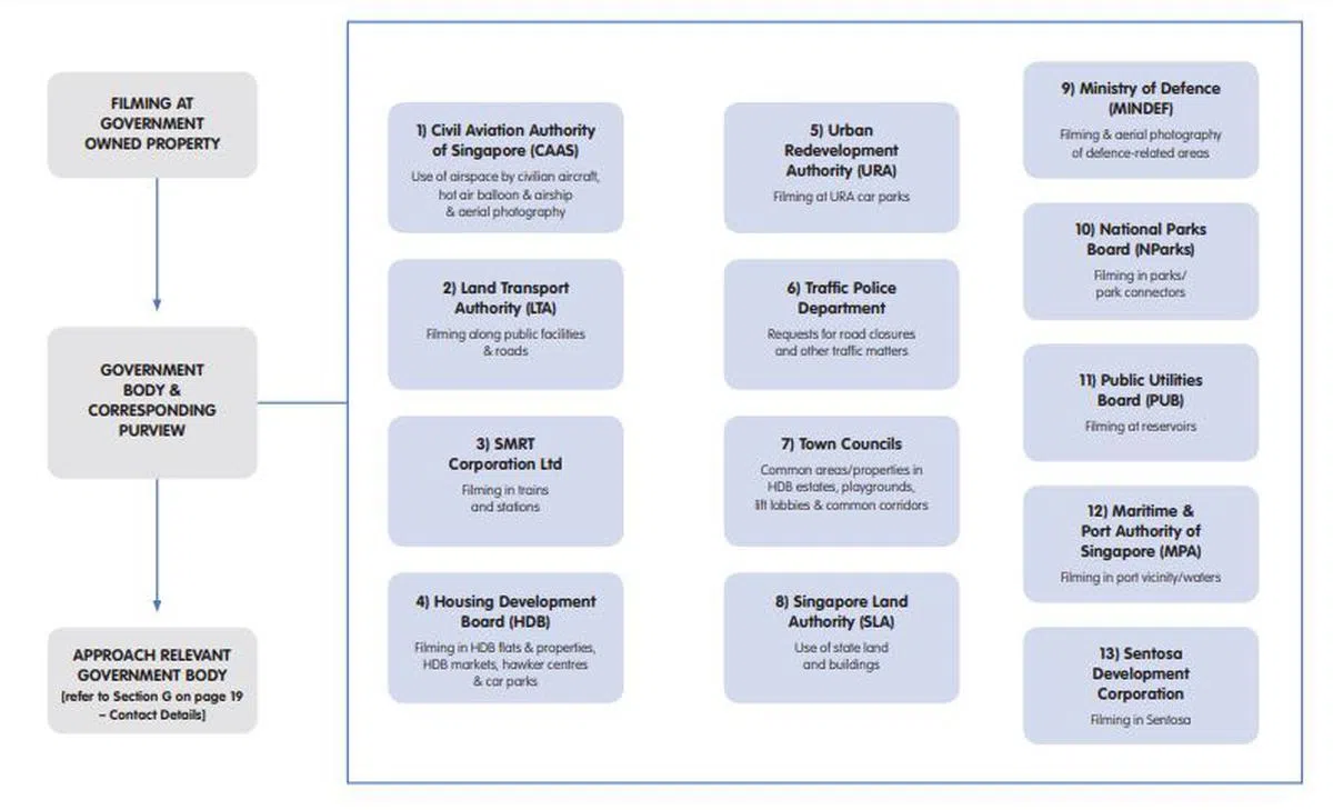 在资讯通信媒体发展局(IMDA)网站发布的《摄影录像指导原则》中,就列出一些必须申请准证才能大阵仗拍摄的地点。
