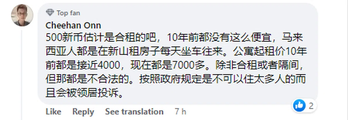 值得一提的是,有网民认为,500新元能在新山租到两卧室公寓的说法,并不完全可信: