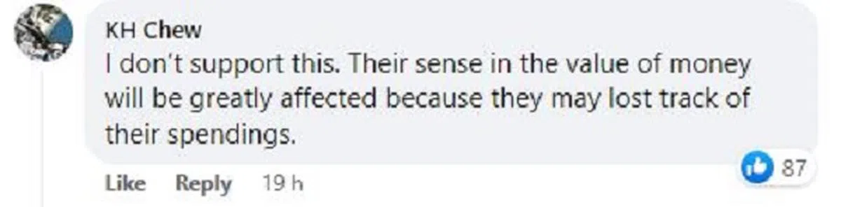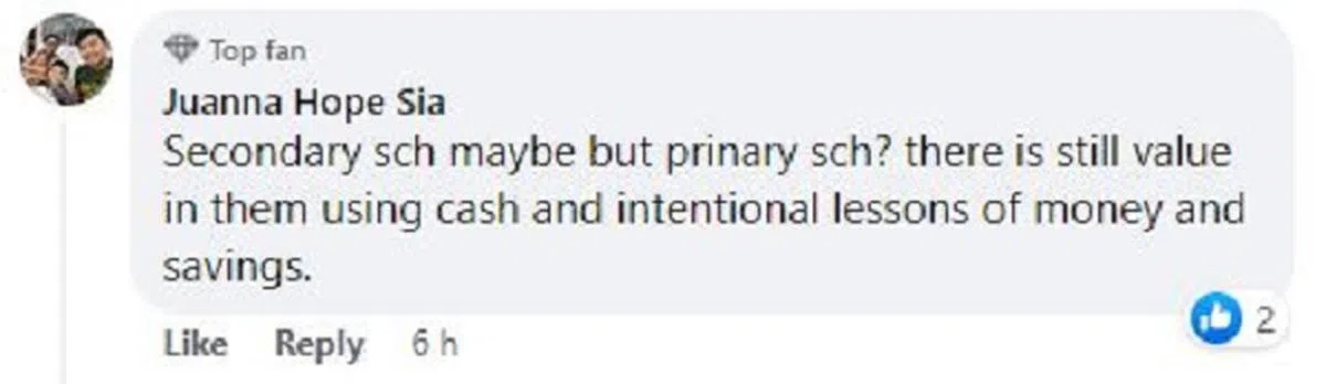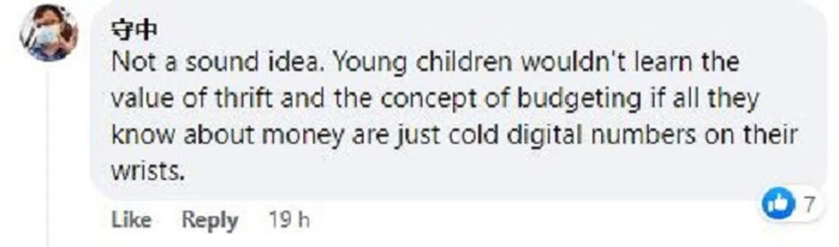 也有网民建议,不应从小学开始推行计划,毕竟让小学生使用现金还是有价值的做法,能够让他们学到什么是金钱和储蓄。