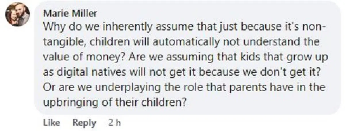 “我们是出于自己难以理解,就假定成长过程中作为数码原住民(digital natives)的孩子们也难以理解(金钱的价值)?还是低估了家长们在教养孩子方面所扮演的角色?”