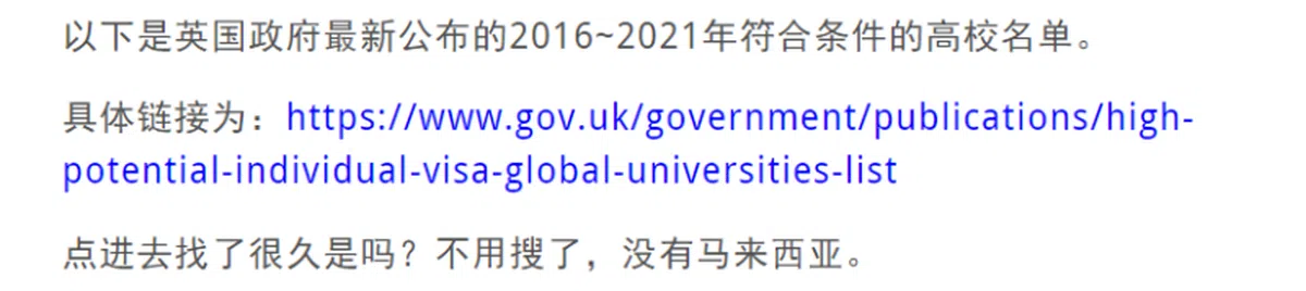 邻国马来西亚则没有大学登上英国政府的这个榜单。