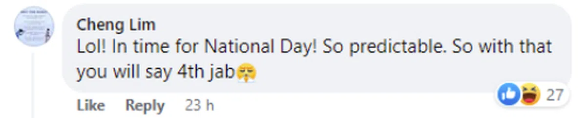 “那段时间刚好是国庆日耶!太好猜了吧,相信接下来当局就会叫我们打第四剂疫苗了。”