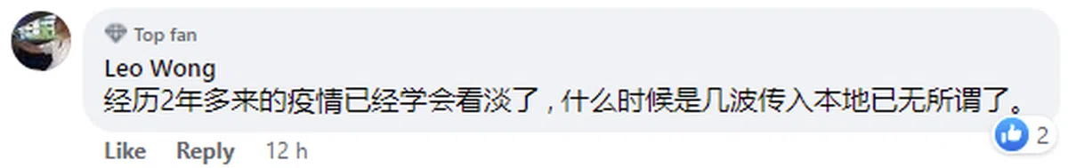 “经历两年多来的疫情,已经学会看淡了,什么时候是几波传入本地已无所谓了。”