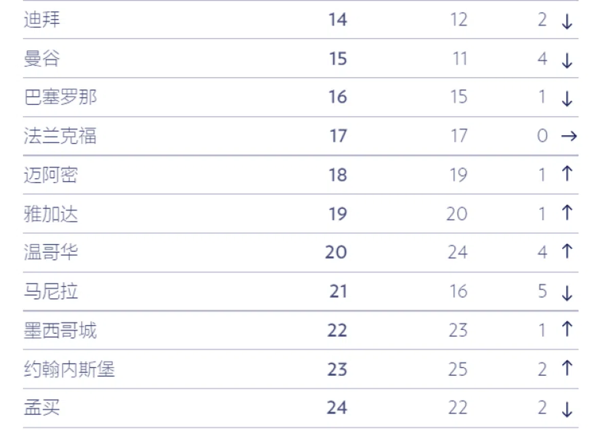 美洲仍是生活成本最低的地区,没有美洲城市进入排行榜前十位。