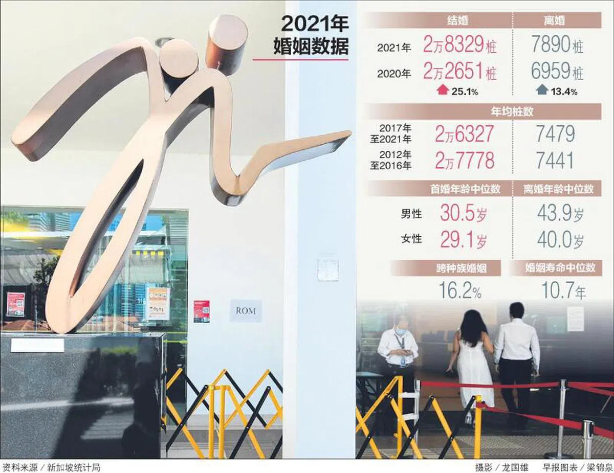 根据新加坡统计局昨天(7月6日)公布的2021年婚姻数据,去年有7890对夫妻获准离婚或获判婚姻无效,比前年多出13.4%。