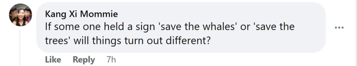 也有网民反问,是不是因为这名学生提出的议题与主流观点相反,大家的反应才会如此激烈和负面?如果他手上拿着的牌子写着“请拯救鲸鱼”、“请保护树木”,事情的发展会不会就不一样?