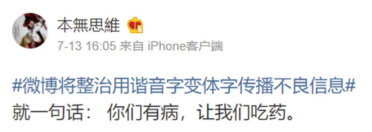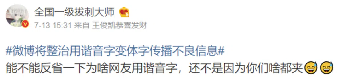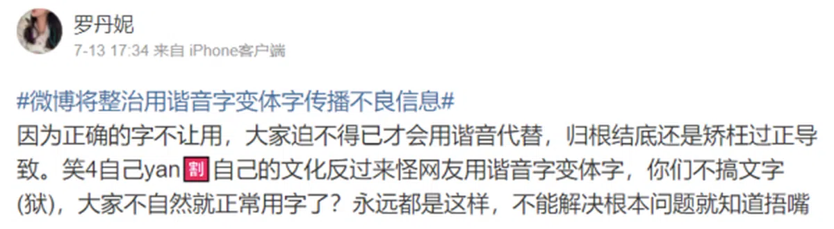 “能不能反省一下为啥网友用谐音字,还不是因为你们啥都夹。”