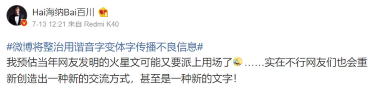 有人还说,如果连火星文都无法规避审查,说不定中国网民未来能重新创造出新的交流方式,乃至新的文字。
