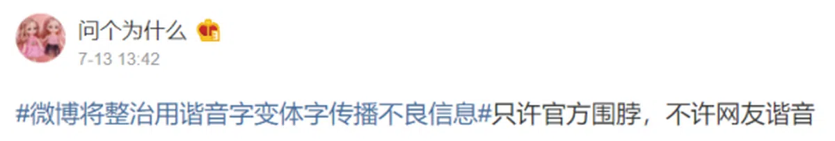 微博宣布整治谐音变体字的公告出炉后,大批中国网民炸锅,认为这是对言论的进一步钳制。