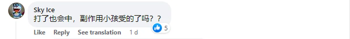 对于儿童接种疫苗,好些网民担心他们承受不了疫苗的副作用,也有人指出,幼儿不一定懂得说出自己身体哪里不适。