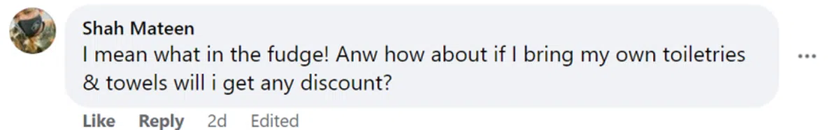 也有网民调侃问道,如果自带毛巾和洗涮用品,能进一步打折吗?