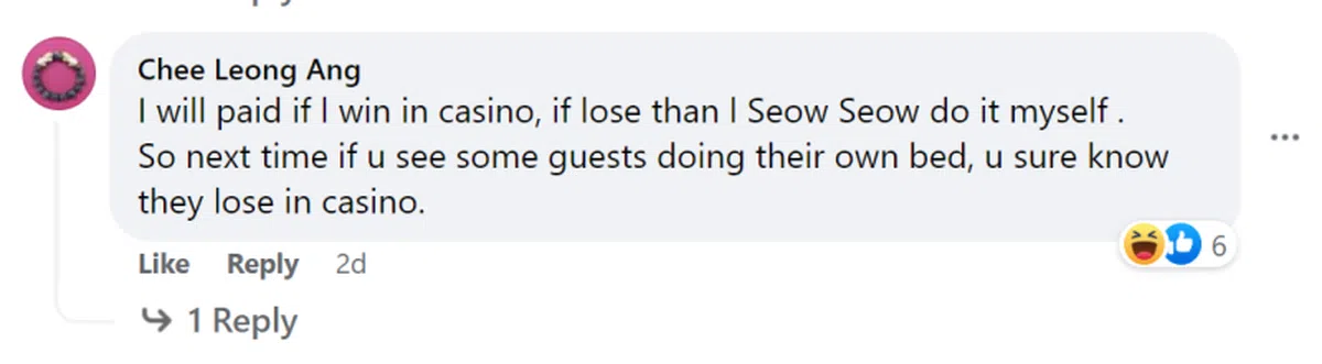 有网民就开玩笑说,这个做法挺不错啊,如果他在赌场赢钱,就会付钱让服务员来铺床,如果输钱,就自己铺床止损。