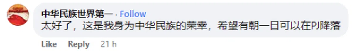 “太好了,这是我身为中华民族的荣幸,希望有朝一日可以在(雪州)八打灵再也降落。”