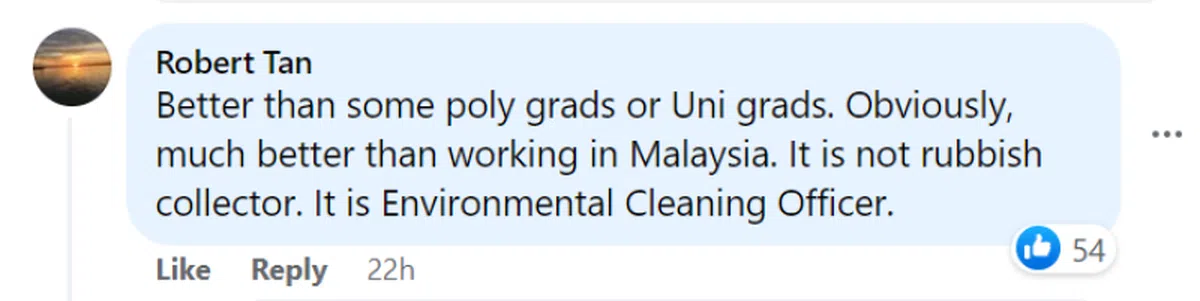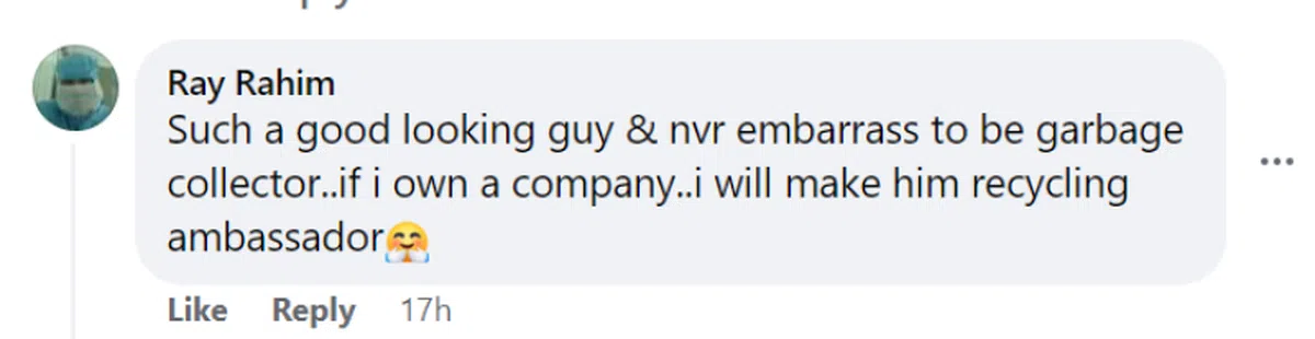 这位年轻人正面的心态获得新马两地不少网民的赞赏。多数人认为只要从事正当工作、以自己的工作为荣,努力且认真地生活,不管做什么工作都值得尊敬。