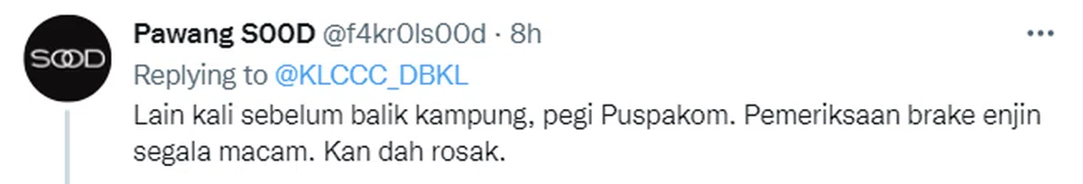 “下次回老家前,先去验车中心检查一下刹车引擎这类东西吧,你看现在坏掉了啦!”