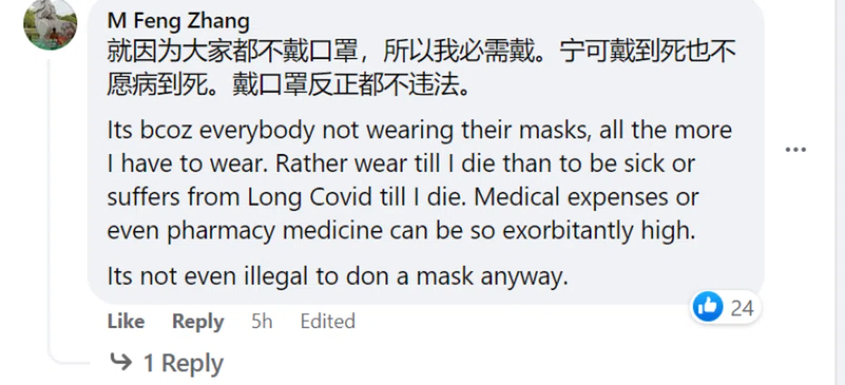 另一些网民则相信小心驶得万年船,人人脱口罩的时候,冠病病毒会传播得更快,这个时候“谁更迟脱口罩,谁就更安全”。所以,他们还会选择继续戴口罩,尤其是拥挤的地方。