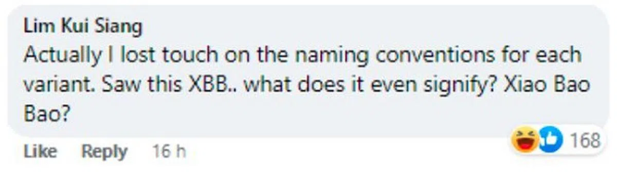负责帮这个新毒株的取名的科学家大概没想到,XBB能让新加坡人如此有共鸣,突发奇想为它列举出那么多名字的可能性,无意中增添了一份“亲切感”。