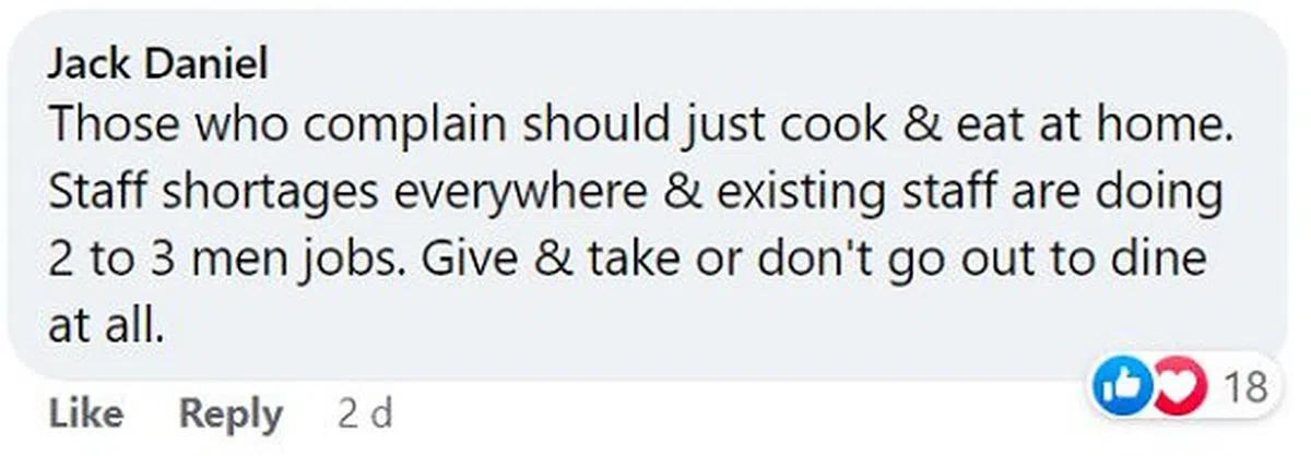 另一方面,有网民认同说,如今本地的餐饮服务水平,确实不如以往。