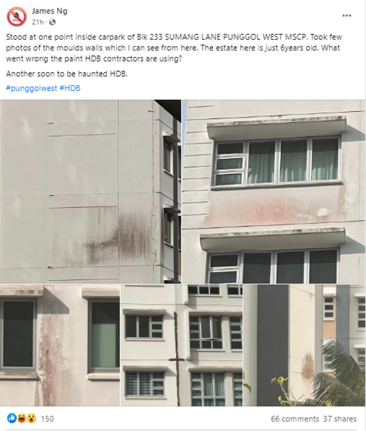 盛港预购组屋才5年外墙就发霉 网上掀起一阵“检查外墙”热潮
