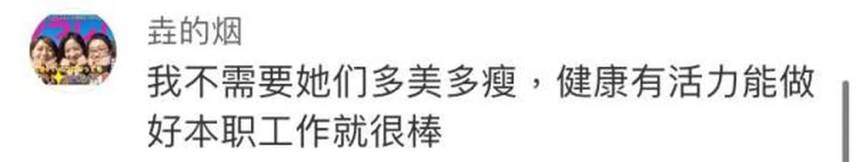 “我不需要她们多美多瘦,健康有活力能做好本职工作就很棒。”