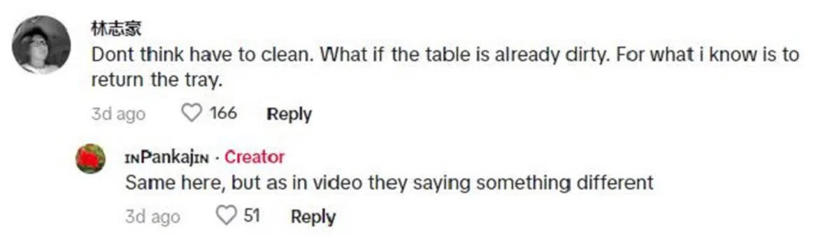 当局也回应部分网民的问题说,食客在用餐后无须把桌面擦干净。