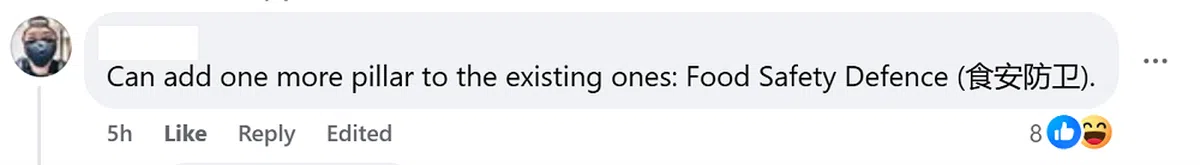 全面防卫涵盖心理、社会、经济、民防、军事和数码这六个支柱。有网民就建议,是时候加多一个支柱:食物防卫。
