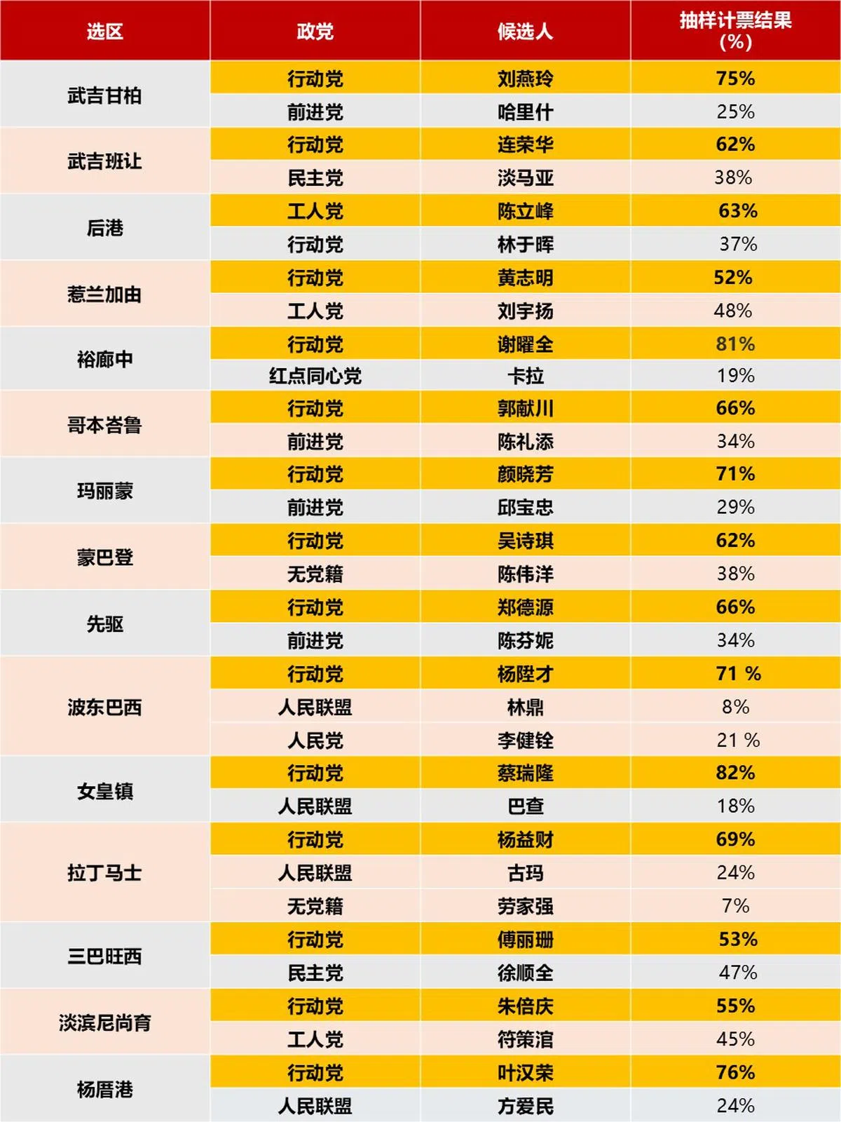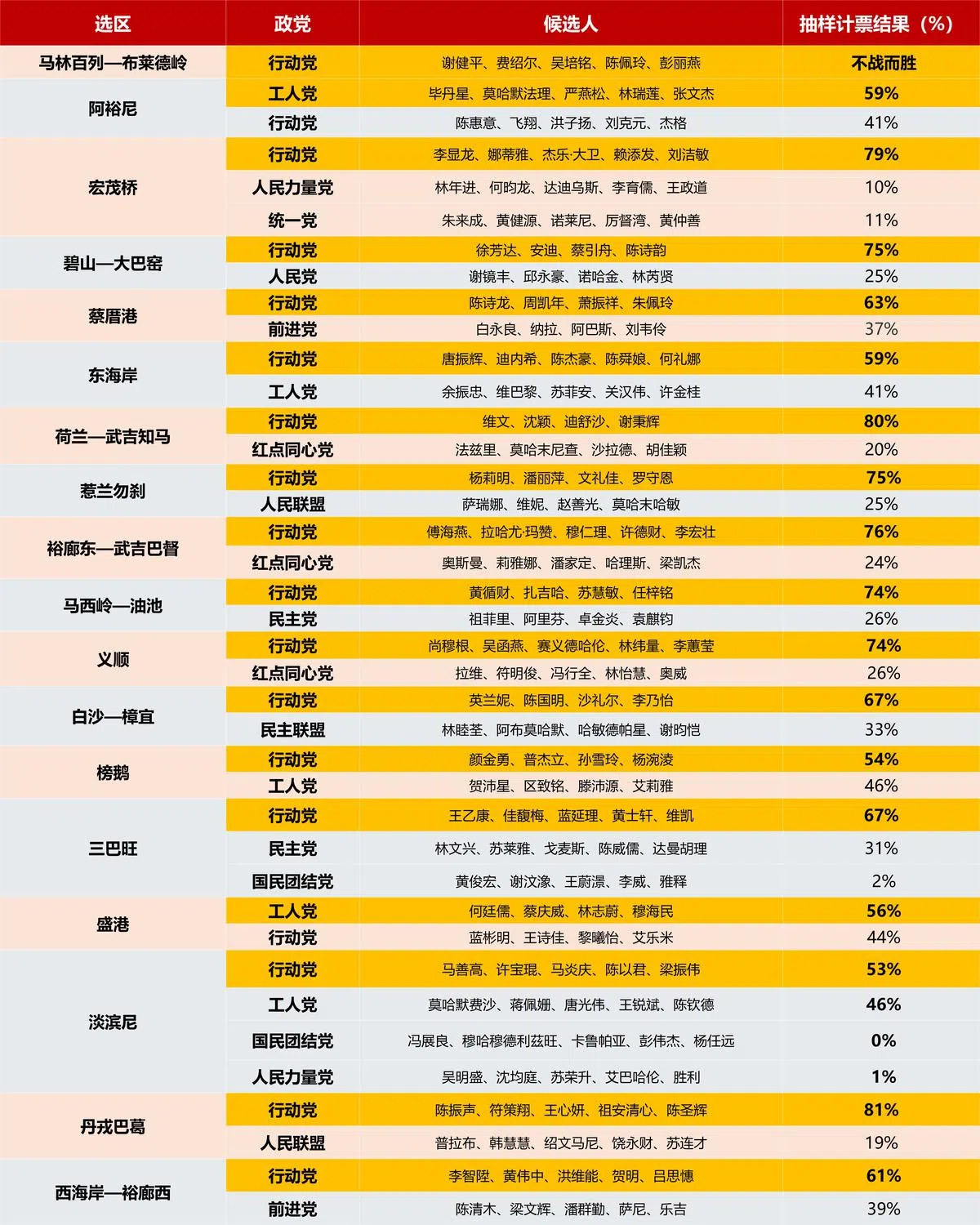 【即时更新】2025年新加坡大选抽样计票结果