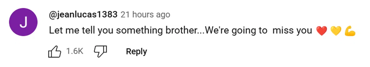 “兄弟,让我告诉你……我们会想念你的。”