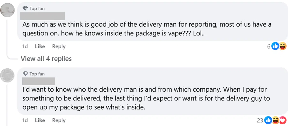 2024年12月11日,一名送货员在被告位于义顺的住家外领取一个袋子后,发现包裹内装着烟弹,于是前往警察局上交物品。
