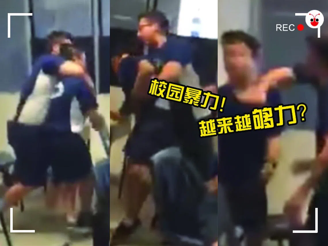 从视频中看到,两个体格较大的学生,一边口操脏话,一边冲向一个体格明显较小的学生,轮流围殴后者。其他学生只让在一旁围观,无人阻止。从有人“冷静地”录下整个事件,也可想见他们对这样的情况可能见怪不怪。