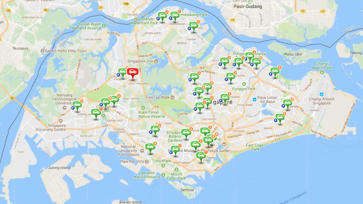 早在2016年6月,新加坡陆路交通管理局和经济发展局就与法国波洛莱(Bolloré)集团子公司BlueSG签署协议,委任BlueSG在未来10年提供共享电动车服务,进一步提倡绿色出行。该服务原定在今年6月就推出市场,但基于某些原因,计划一拖再拖,直到本月12日,公众才得以见到它庐山真面目。 目前,新加坡全岛共有80辆电动车和32个充电站,它们大概分布如下:
