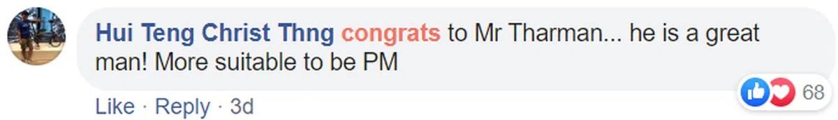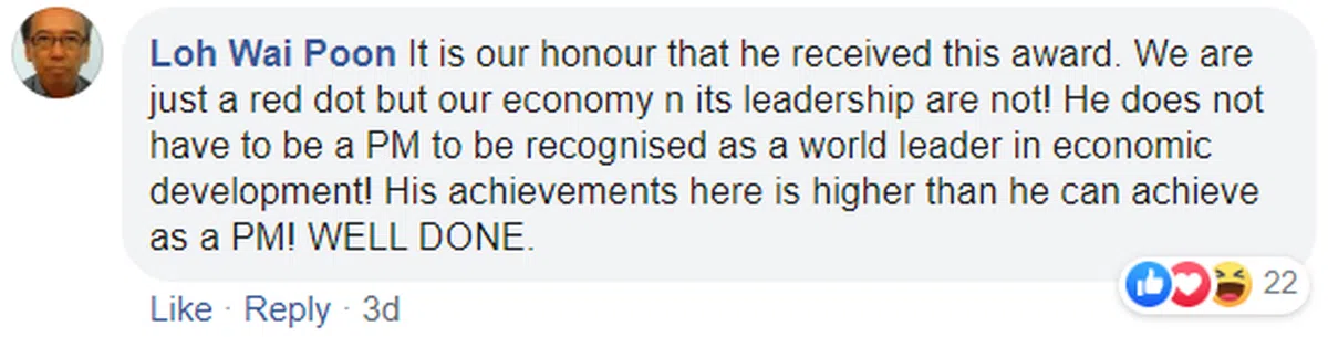 有网民指出,尚达曼获奖证明新加坡虽是个小红点,但我们的经济和领导人一点儿都不容小觑。尚达曼无须当总理就能在世界经济发展上获认可为世界领袖。他所取得的成就已经比他当一名总理还来得高。真棒!