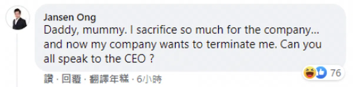 “爸爸妈妈,我为公司奉献了这么多,结果公司现在要解雇我。你们可以帮我跟总裁谈一谈吗?”