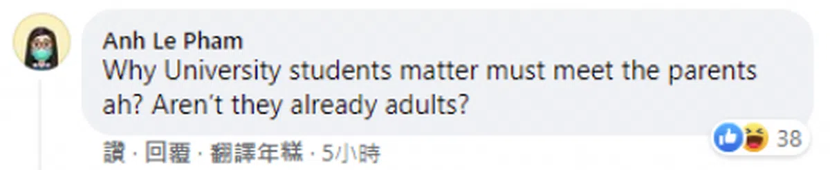 “为什么这些大学生的事情得出动家长咧?他们难道还没长大成人吗?”