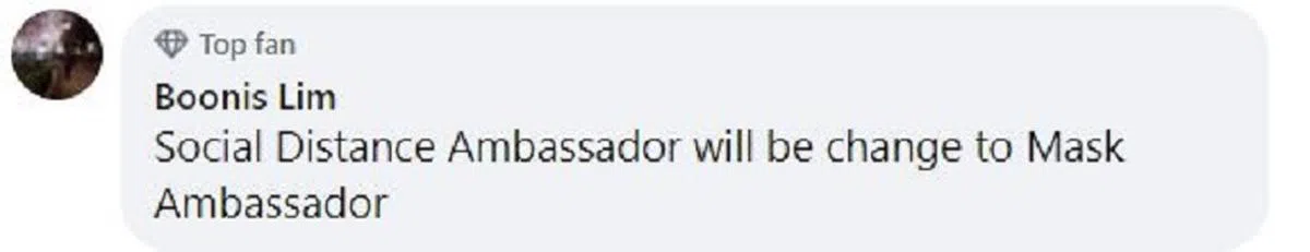 一名网民就提议,不如考虑把“安全距离大使”的职称,改为“口罩大使”吧。这样就能在新措施下强化国人戴好口罩的意识。