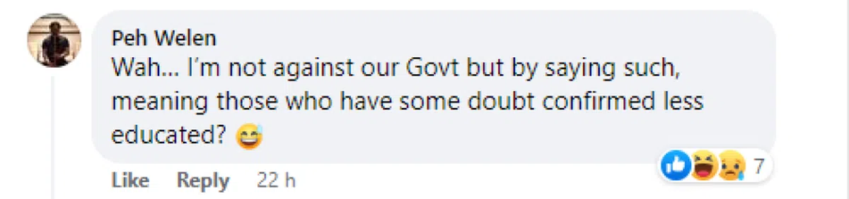 “哇...我不反对政府,但这样说的意思难道是还有疑虑的人,肯定受教育较少?”