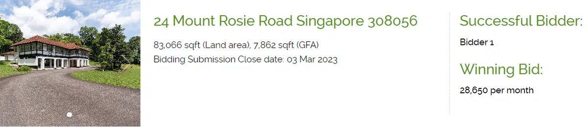 红蚂蚁查看了类似莱道路26号和31号占地面积广的独立洋房的租金竞标价后发现,价位介于2万5500新元至4万3000新元。以下是竞标价的截图,按最贵的往下排。
