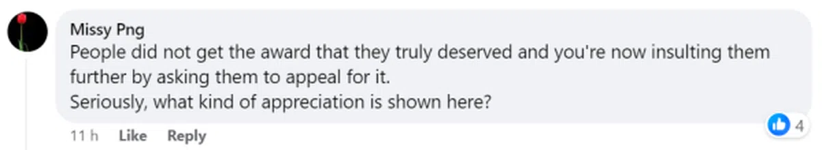 “人们没有得到应得的表彰也就算了,你现在还要他们上诉申请,这不是在羞辱他们吗?说真的,这算哪门子的表达感激?”