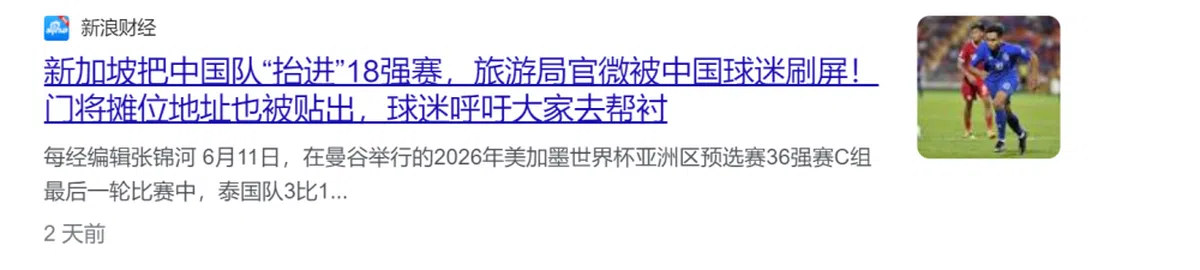 中国球迷这一波神操作听起来很不理性,新加坡人觉得莫名其妙很正常。